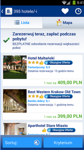(aplikacja mobilna serwisu booking.com)