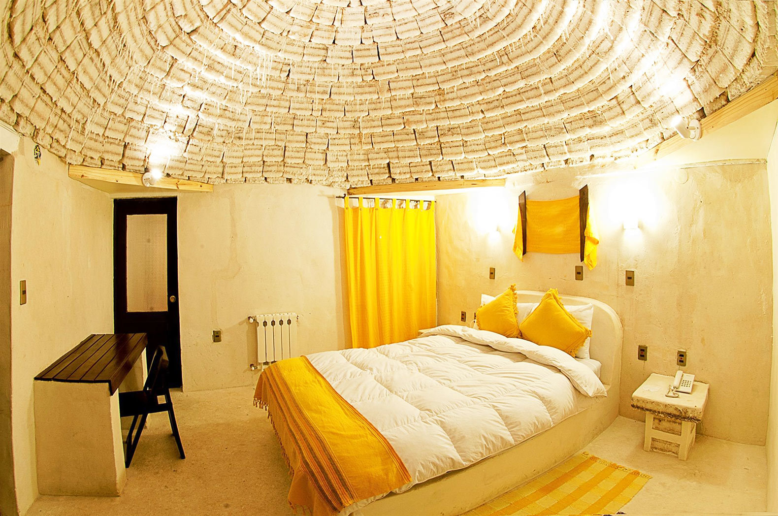 Na pierwszy rzut oka z zewnątrz hotel wygląda jak wioska koczowników połączona z polową stacją badawczą na środku bezludnej pustyni. Ale to tylko pozory, ponieważ we wnętrzu ukryte są luksusowe wnętrza umożliwiające relaks i wypoczynek z dala od zgiełku miasta. Nazwa obiektu jest nieprzypadkowa, ponieważ cała jego konstrukcja (ściany, podłogi, sufity, schody, meble – nawet krzesła!, rzeźby) wykonane są z bloków solnych. To pierwszy na świecie taki hotel, do tego położony na obszarze około 4,5 tys. m kw., wysoko nad poziomem morza. Hotel oddaje do dyspozycji gości 30 pokojów (każdy wygląda trochę jak iglo), do tego restauracje, bary i pomieszczenia do wypoczynku dla gości.