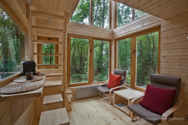 Niemal każdy z nas będąc dzieckiem marzył o mieszkaniu w domku na drzewie. Teraz można spełnić to marzenie – w nałęczowskich wąwozach powstał pierwszy w Polsce obiekt noclegowy zawieszony w koronach drzew. Do dyspozycji gości są cztery jedno- lub dwupoziomowe domki (Grab, Sosna, Jodła i Tuja), choć raczej należałoby je nazwać apartamentami na wysokim poziomie, które standardem przewyższają niejeden dobry hotel. Wyposażone w kuchnię, salon, minibar, łazienkę, biblioteczkę z bogatym księgozbiorem (książki po polsku i angielsku), tarasy i stanowiska (z lornetką) do obserwacji otaczającego lasu. W jednym z domków oprócz zamieszkania można korzystać z sauny, masaży i strefy spa. To idealne miejsce dla osób szukających wypoczynku w ciszy i spokoju, z dala od miejskiego zgiełku, blisko natury.